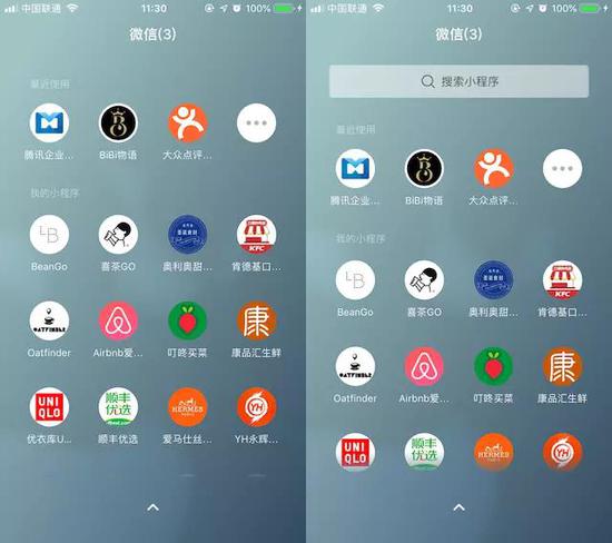 在新版本中,微信將其擴充成了一整個屏幕,有點像是一個小程序桌面。